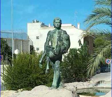 Estatua alegorica en la plaza de Manolo Rodriguez