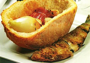 - - 4 sardinas de bota (sardinas saladas), o si se prefiere 4 morcillas de cebolla, o 4 buenas lonchas de tocino entreverado
