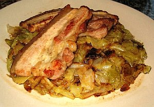 - Se escurren la col y la patata y se echan en una sartén grande.