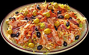 - Se decora con las anchoas, el atún, el bacalao, las aceitunas y luego cada uno se echa más salsa si lo desea.
